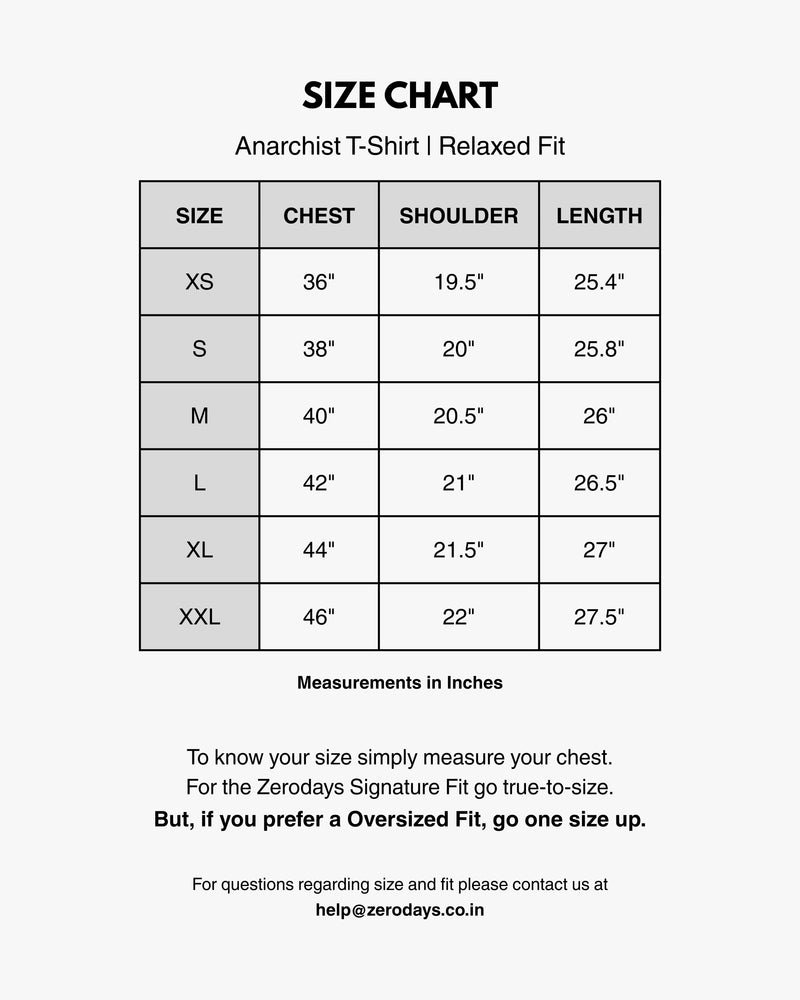 Our relaxed-fit "Anarchist T-Shirt" is made from premium, medium-weight washed cotton jersey. The design showcases a striking Gargoyle motif on the chest, complemented by our Zerodays logo, both rendered in a high-quality digital print for a sharp, lasting finish. Designed by Ayush Nikam.